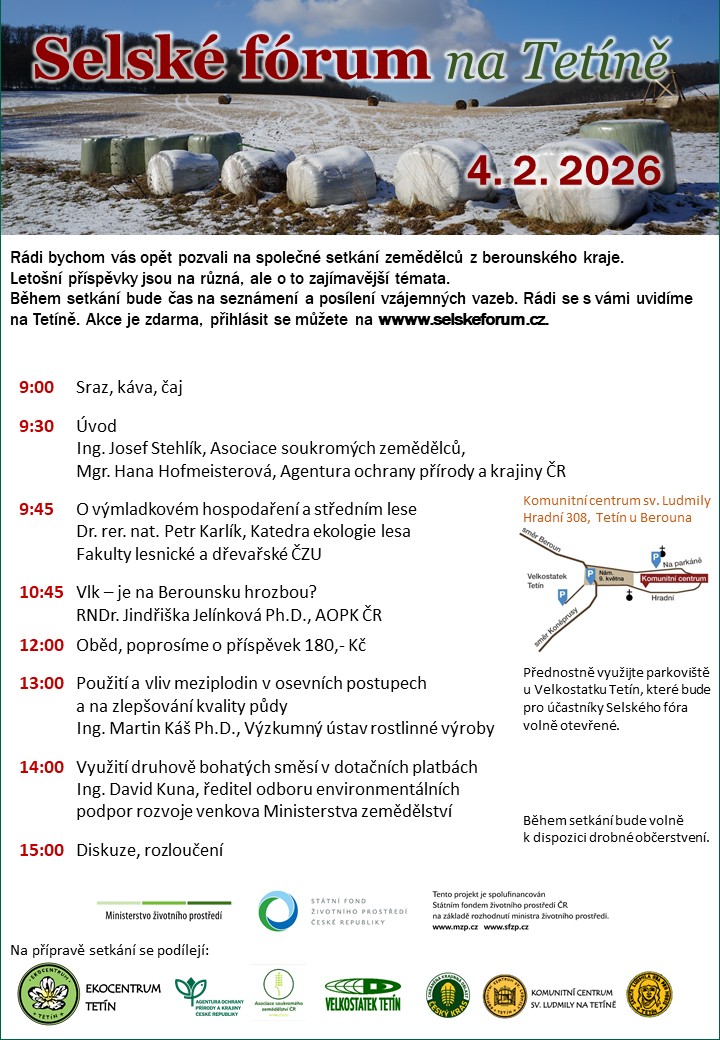 Během setkání bude čas na seznámení a posílení vzájemných vazeb. Rádi se s vámi uvidíme na Tetíně. Akce je zdarma, přihlásit se můžete na wwww.selskeforum.cz.